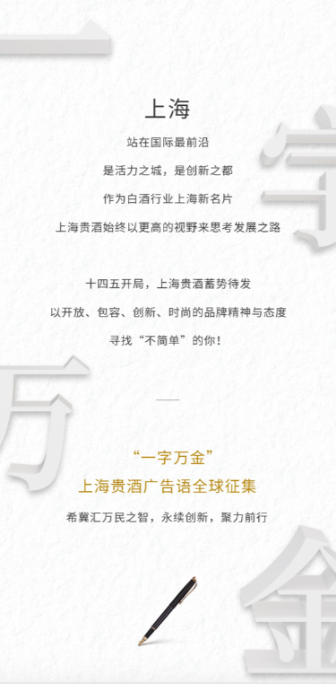 问鼎奖(1名):最终被采用的广告语,将获得每字1万元人民币的终极现金大奖,并授予“乐竟网站web版登录入口-乐竟online(中国)”企业大使,尊享全年最高会员礼遇,同时获得乐竟网站web版登录入口-乐竟online(中国)青澄黄贵酿1套(天青、阳澄、月黄)及价值14000元美酒礼券包等超值权益。